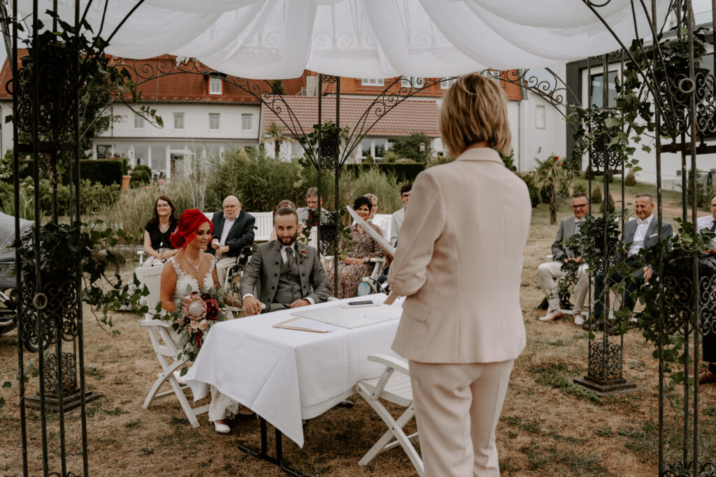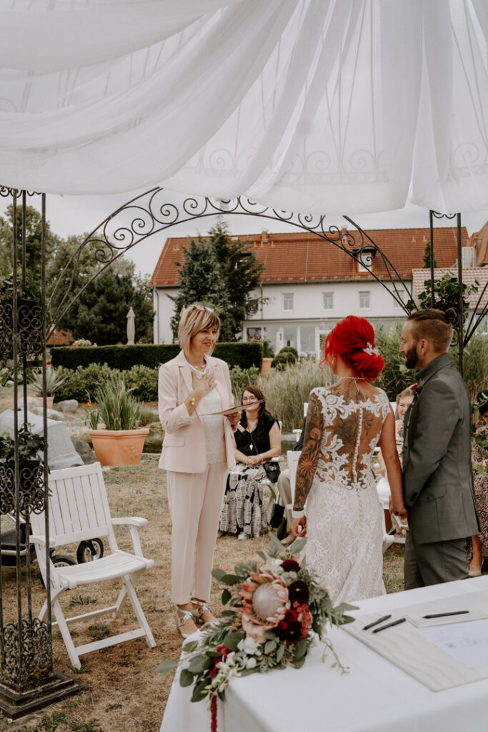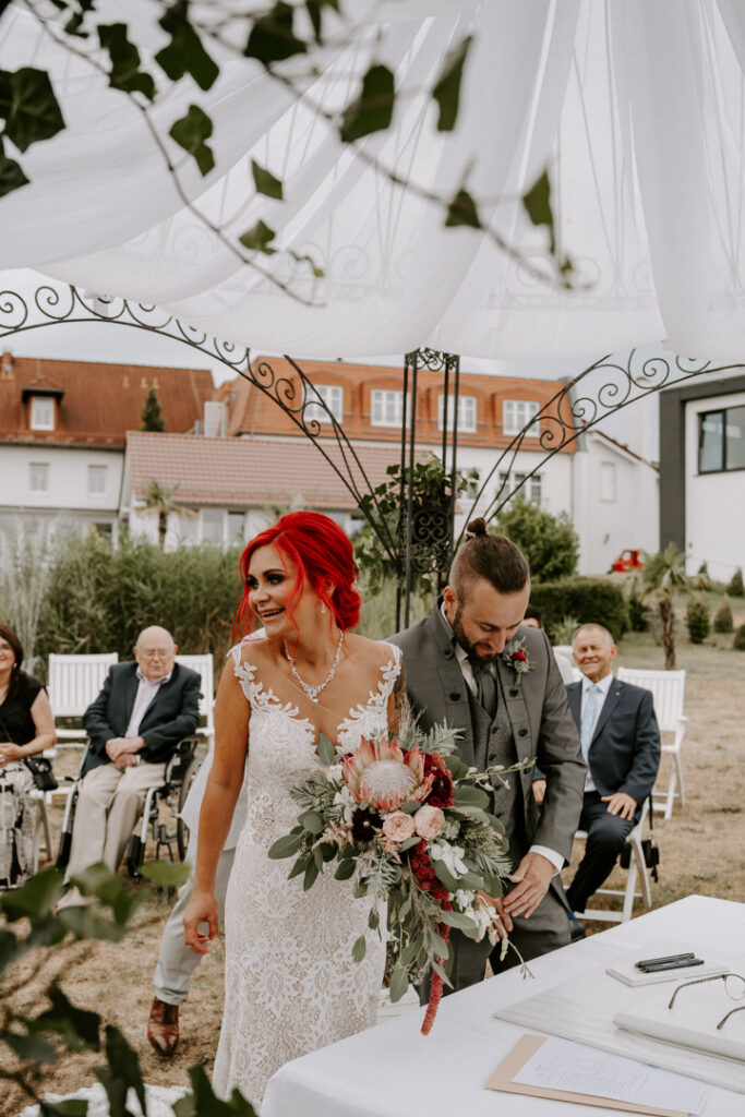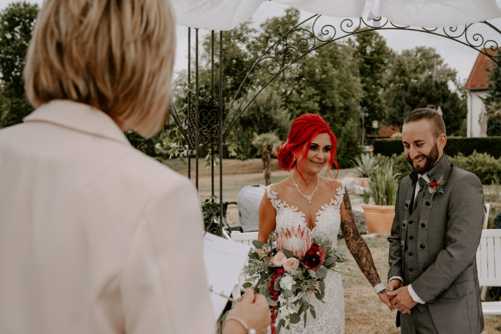 Die Freie Trauung hat direkt im angrenzenden Hotelgarten stattgefunden. Trotz des Regens hatten wir unheimlich viel Spaß beim Paarshooting und es sind viele schöne Aufnahmen entstanden. Janine und Matthias sind richtige Herzmenschen und ich habe sie sofort in mein Herz geschlossen. Der Tag war gefüllt mit echten Emotionen, wir haben herzlich gelacht, geweint und die Liebe zelebriert. Als mir Janine nach der Auslieferung der Fotos offerierte, dass sie sofort ein Shooting zum ersten Jahrestag buchen möchte, erwärmte es mein Herz. Ich denke so gern an diesen Tag zurück, aber schaut selbst.